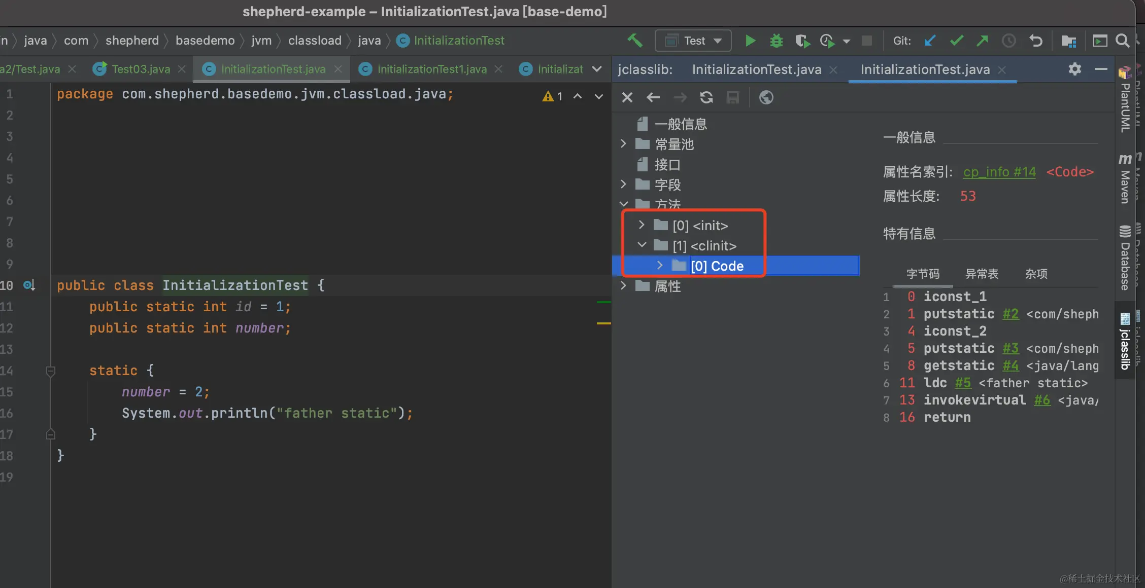 就能看到如下信息了:可以看到有初始化执行的方法:<clinit>