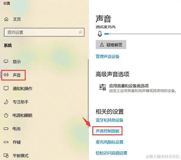 第2步:在 【声音】 界面,单击 【声音控制面板】 。