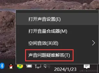 Windows系统提供了内置的故障排除工具,可以帮助你自动检测和修复音频问题。右键单击音量图标,选择 【故障排除音频问题】 。