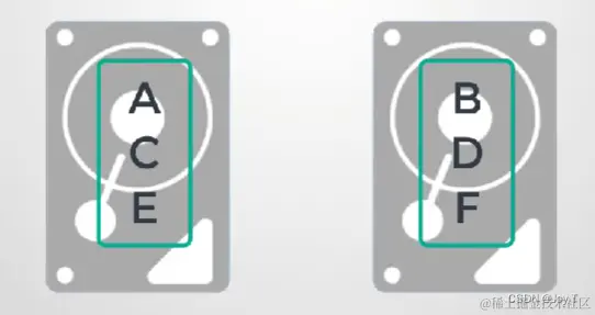 RAID 0(条带化) :将数据分割成块,均匀分布在两个或更多的磁盘上,没有冗余。它提高了读写性能,但如果任何一个磁盘失败,数据将丢失。(图片来自b站)