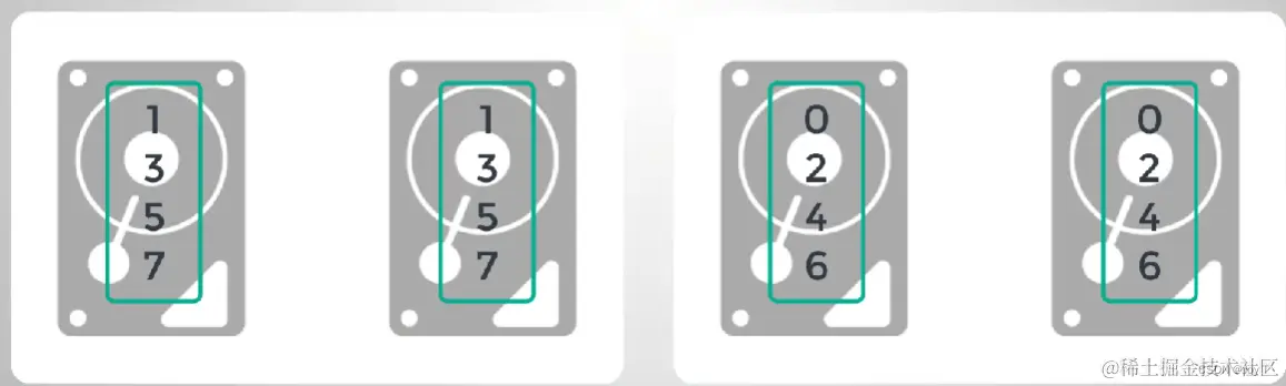 RAID 6(双奇偶校验) :与RAID 5类似,但使用两组奇偶校验数据,因此可以容忍两个磁盘同时故障。