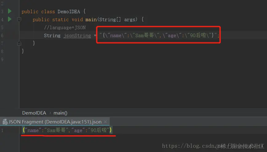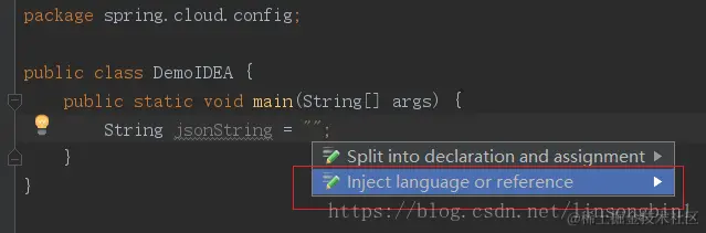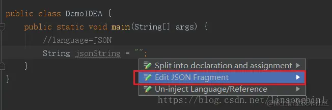如果你使用IDEA在编写JSON字符串的时候,然后要一个一个\去转义双引号的话,就实在太不应该了,又烦又容易出错。在IDEA可以使用Inject language帮我们自动转义双引号。