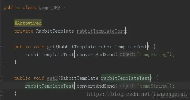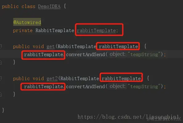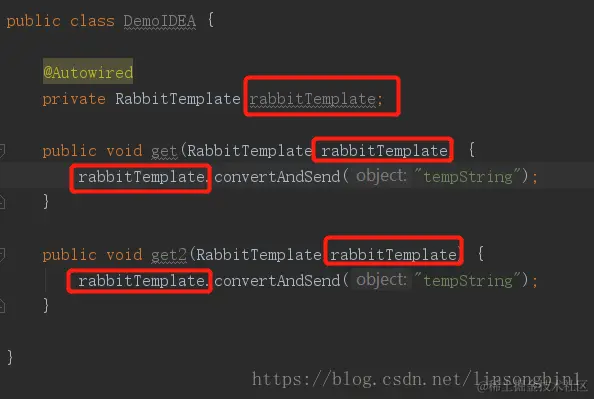 上面的代码中,有5个地方用到了rabbitTemplate文本,如何批量修改呢?