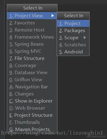 当工程里的包和类非常多的时候,有时候我们想知道当前类在project视图里是处在哪个位置。