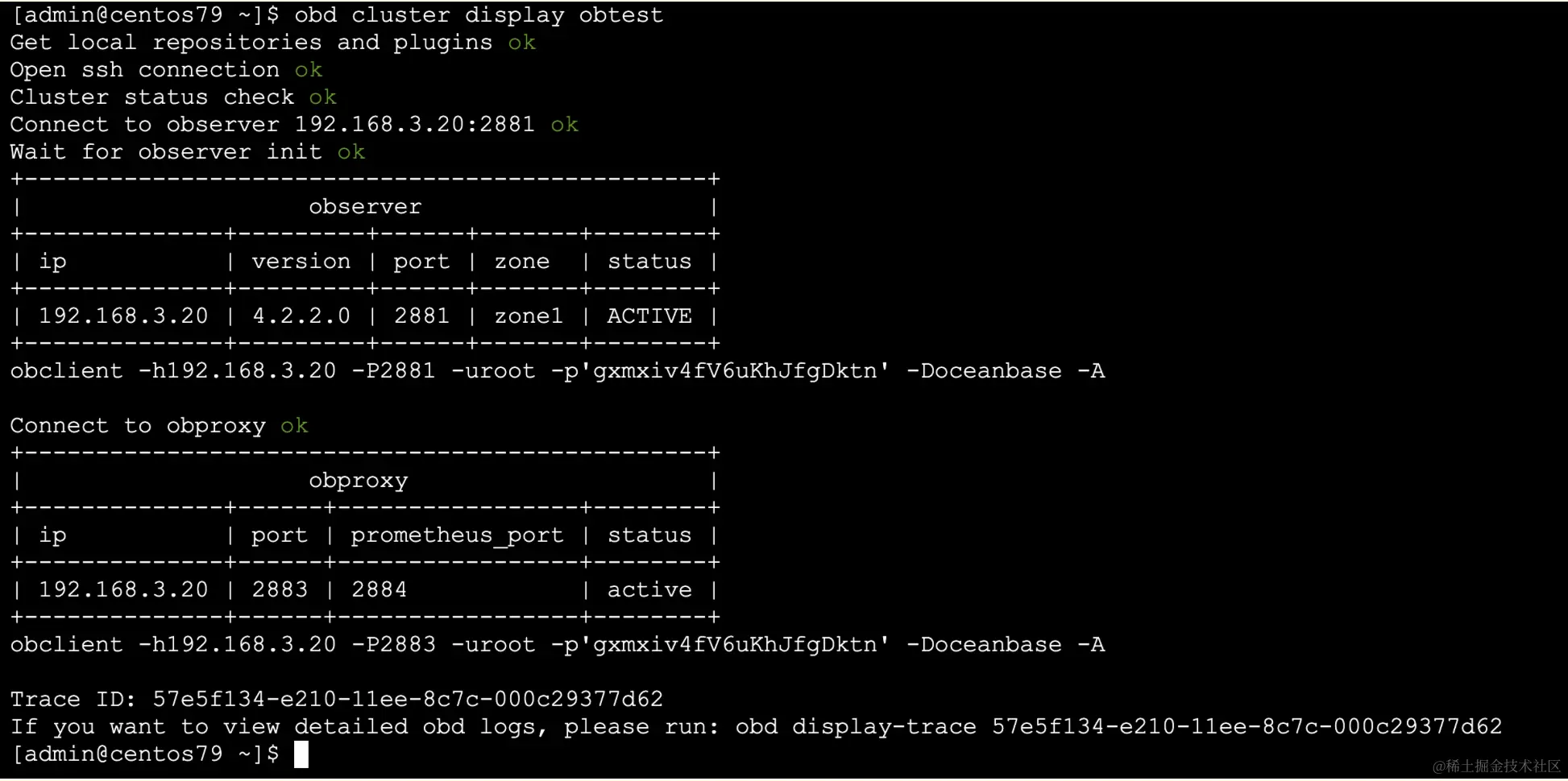If you want to view detailed obd logs, please run: obd display-trace a4159da4-e20e-11ee-bed7-000c29377d62