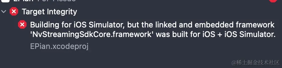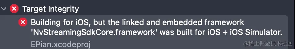 由于NvStreamingSdkCore.framework包含模拟器和真机架构,所以直接拖到主工程,在xode13上会报一下错误: