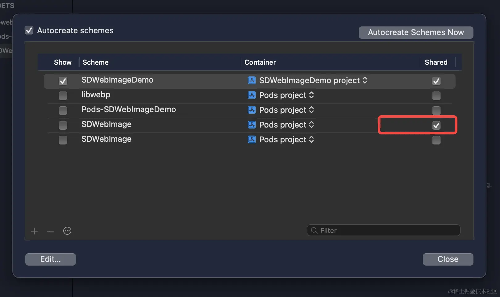 Dependency "SDWebImageDemo的" has no shared framework schemes for any of the platforms: iOS