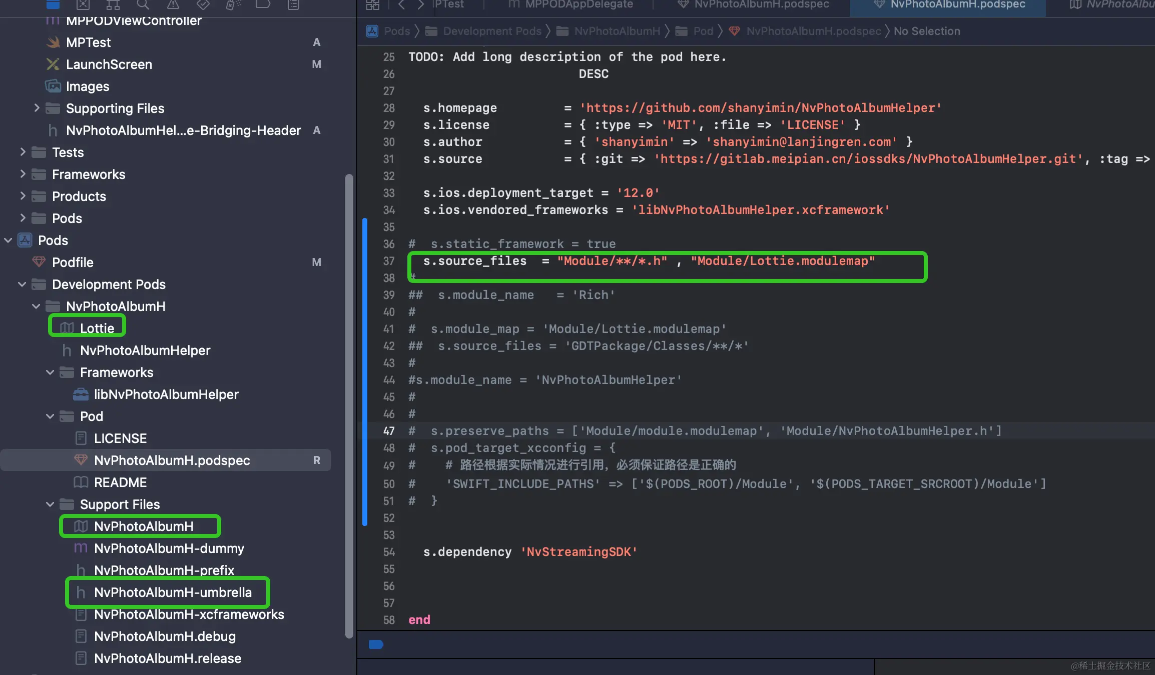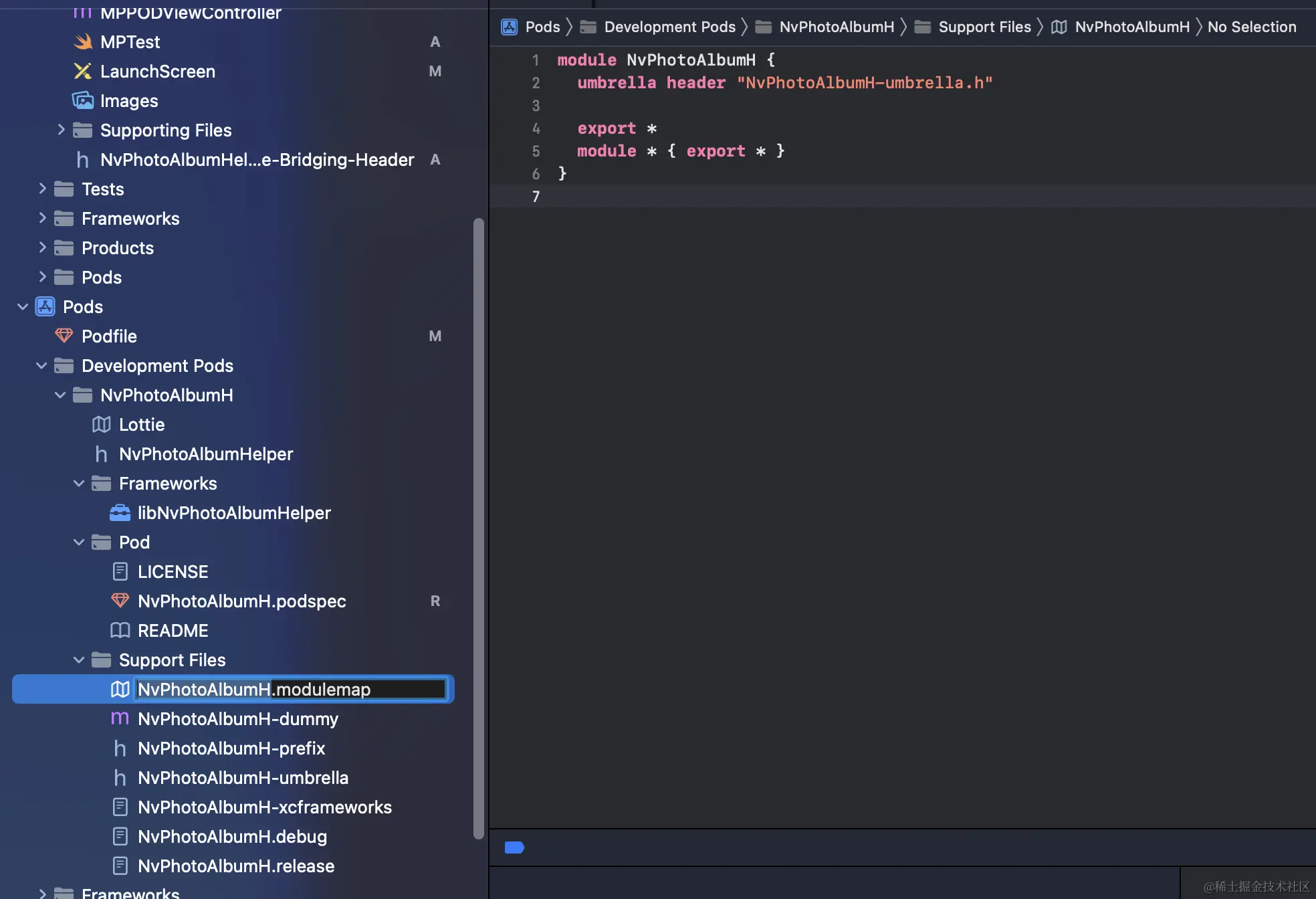 但是,奇怪的是 自定义的"Module/Lottie.modulemap",并没有用,有用的是自动生成的NvPhotoAlbumH.modulemap