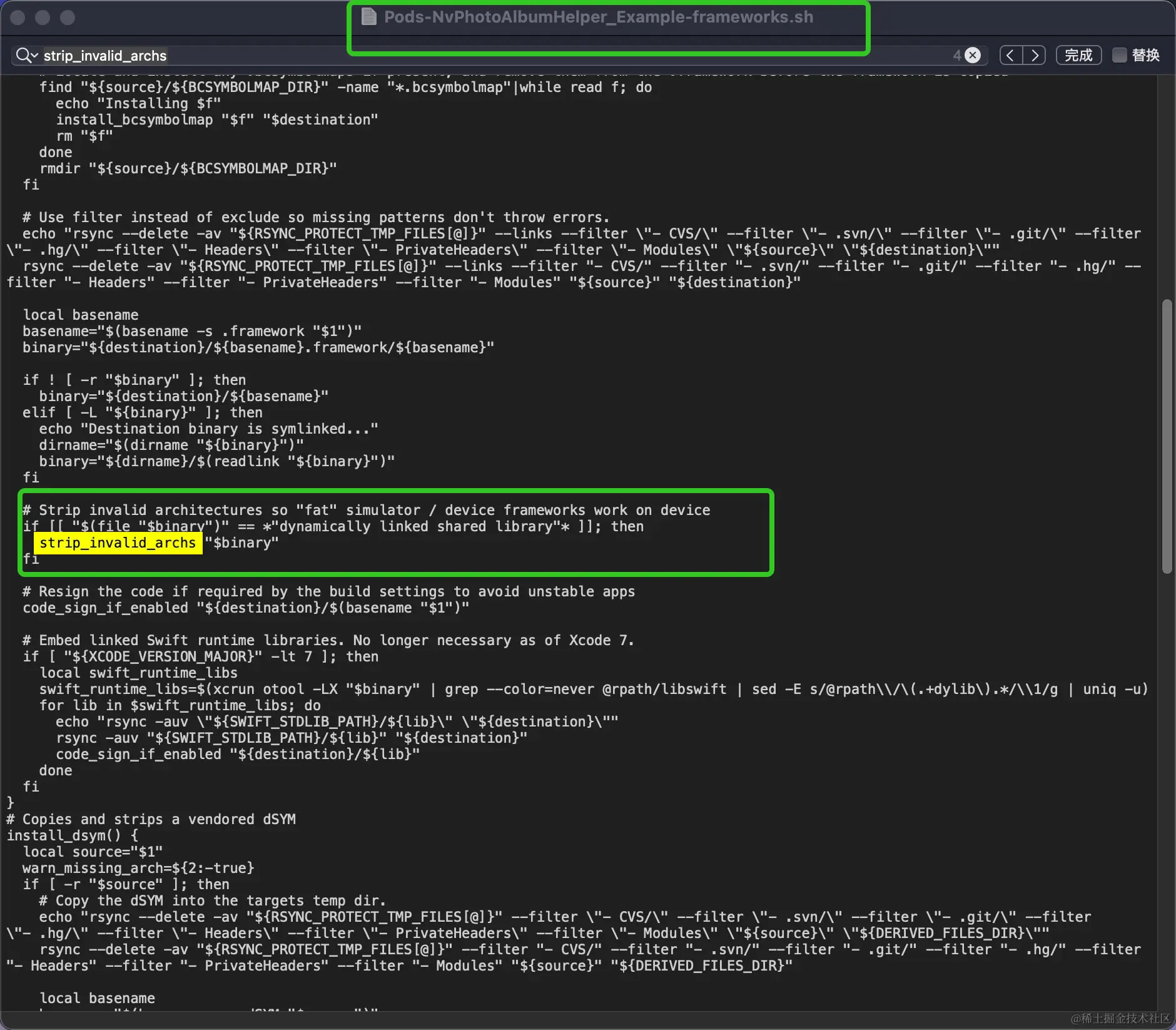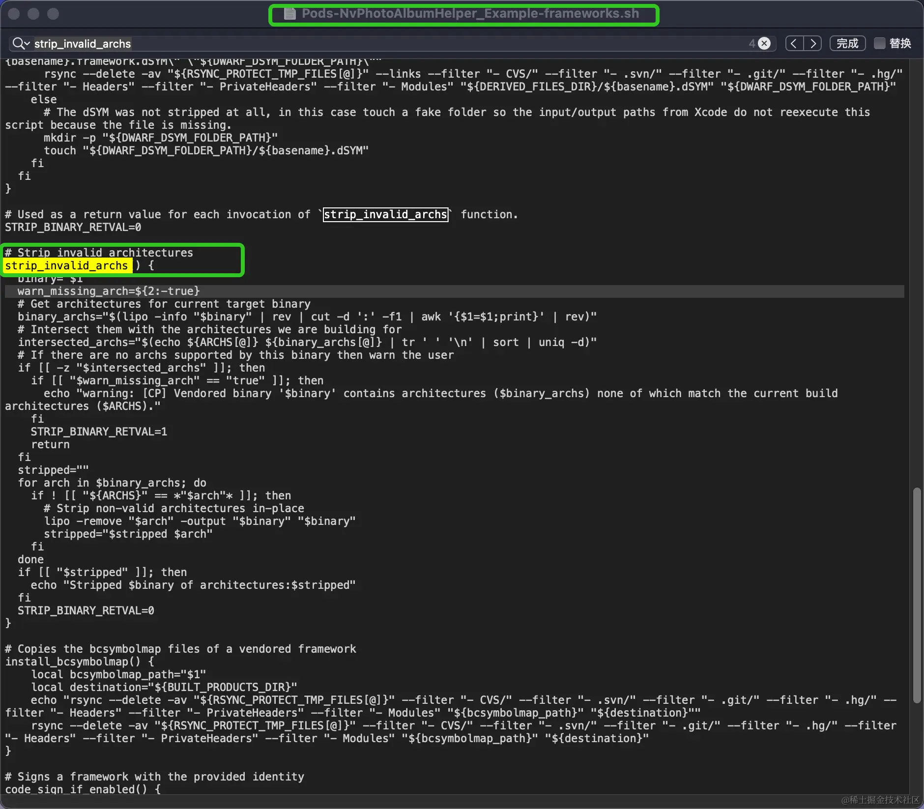 找到对应的文件,我们可以看看脚本内容:其中有一个方法,这个方法就是去掉真机架构或模拟器架构的: