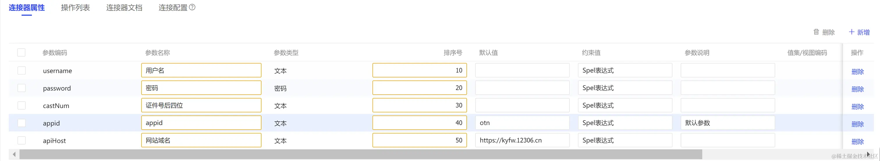 在12306生态封装过程中,我们将网站地址、用户名、密码及证件号后四位等关键信息整合为连接器属性。当AIGC平台调用生态连接操作时,这些属性将作为登录订票的必备要素。