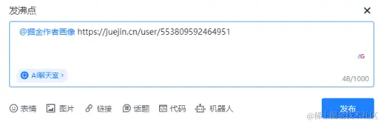 😳上周五,掘金又发布了 Coze(扣子) 有关的活动 → 《🌈 玩转沸点 | 成为AI魔法大师,释放你的完美创造力!》,不需要写文章,只需要 建Bot发布到掘金,并在 AI聊天室 中发 沸点@ 该Bot进行对话就能参与。