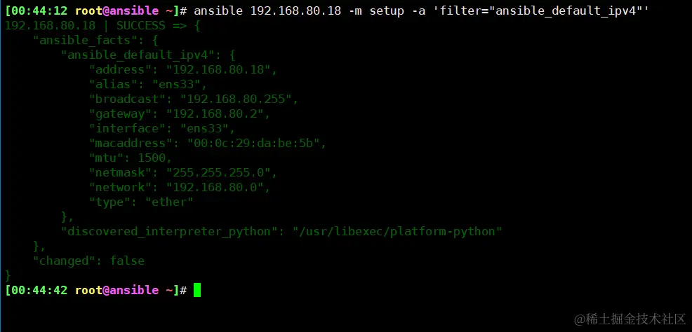 ansible 执行结果一般都会返回一个字典类型的数据,以此你会看到很多你不关心的字段,我们可以通过指定字典的 key,例如 stdout 或 stdout_lines,只看到你关心的数据。