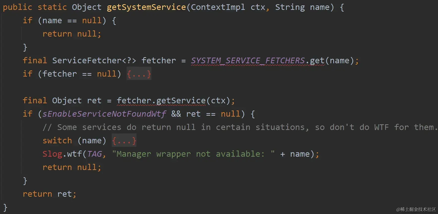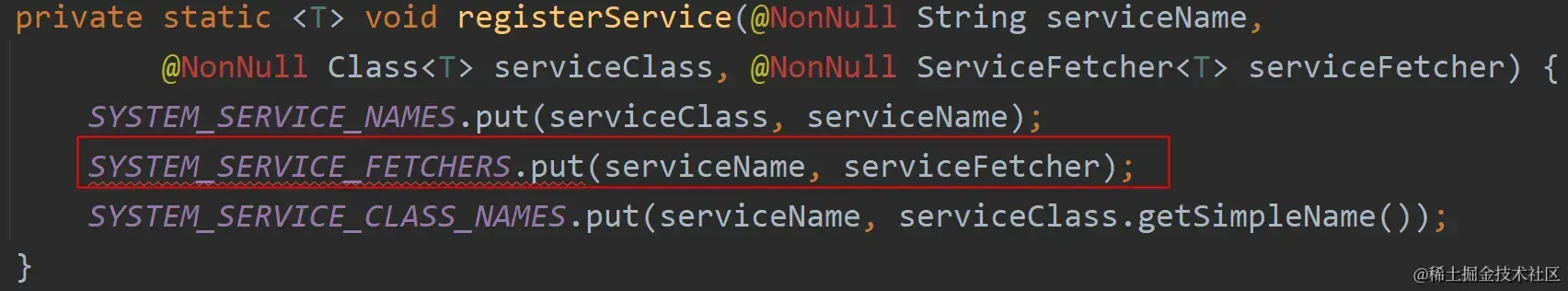 SYSTEM_SERVICE_FETCHERS是一个Map集合,对应的key为服务的名称,value为服务的实现方式:
