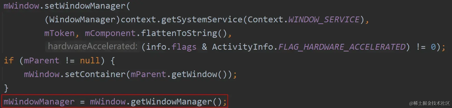 而mWindowManager属性的赋值是发生在Activity#attach()方法中: