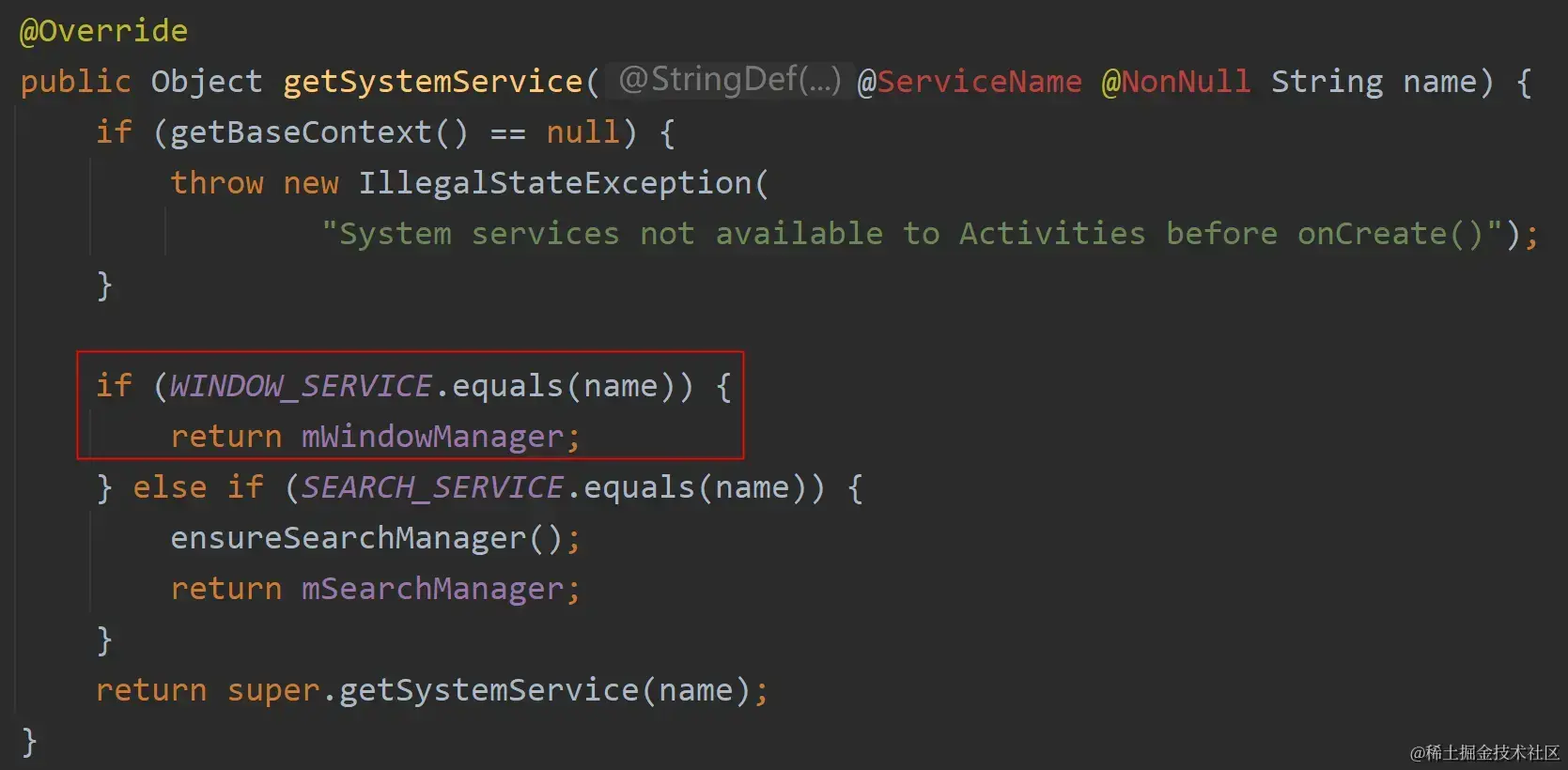 而这个mBase属性对应的类为ContextImpl对象,对应ContextImpl#getSystemService():