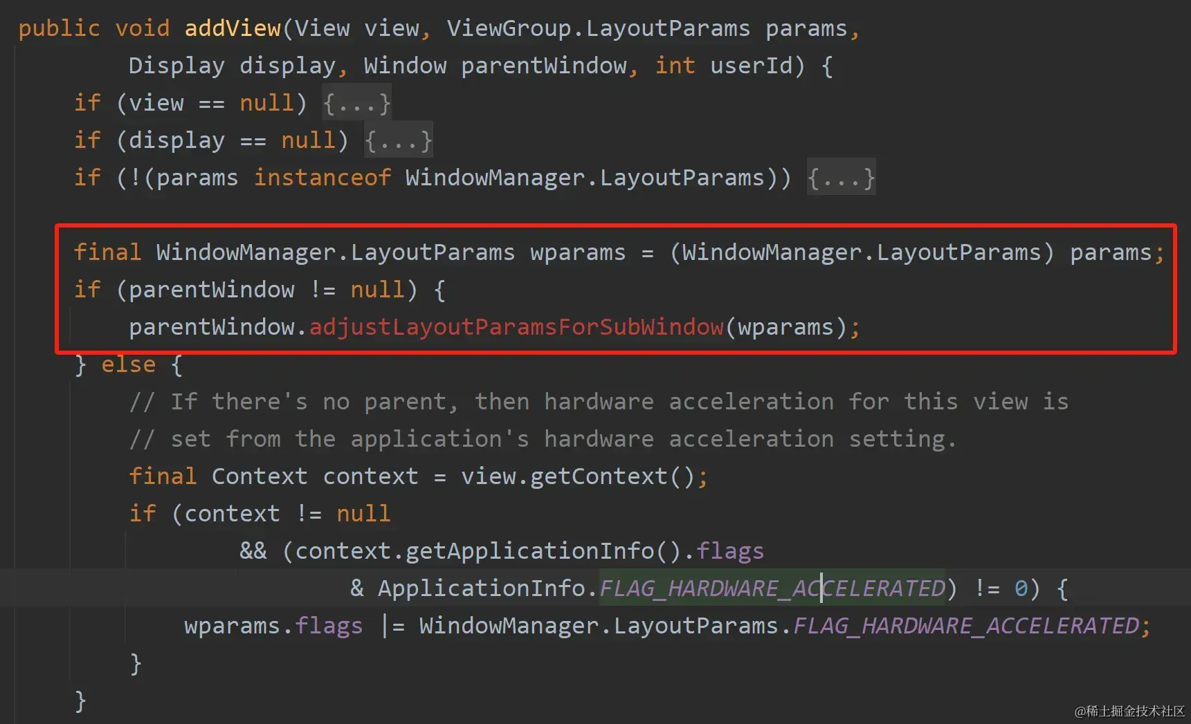 前面我们有讲过,对于Application获取的WindowManagerImpl,其mParentWindow属性为null,而Activity对应的mParentWindow不为null。