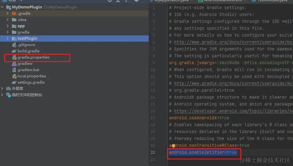 在project主目录下的gradle.properties中添加