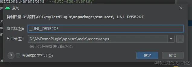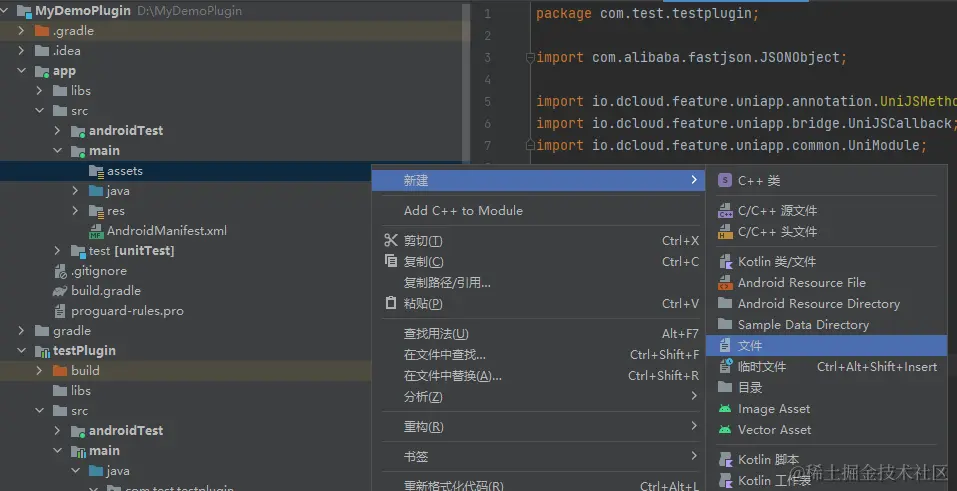 将UniPlugin-Hello-AS下的app>libs下的文件复制到自己项目的app>libs