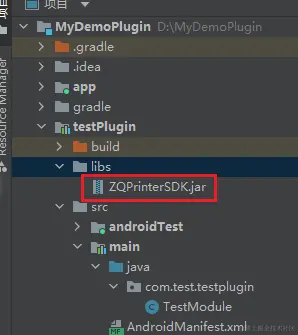 插件开发成功接下来可以进行自己的业务开发,调用第三方SDK。我涉及的是调用SDK获取称重数据,将SDK导入module下的libs目录下