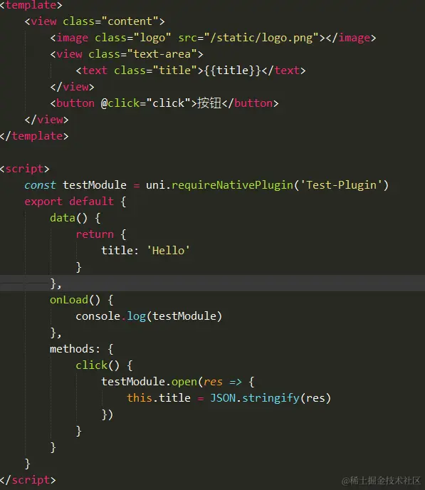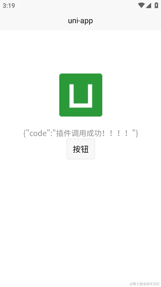 运行后点击按钮调用插件方法获取到了插件返回值,调用插件成功,接下来可以进行自己的业务开发