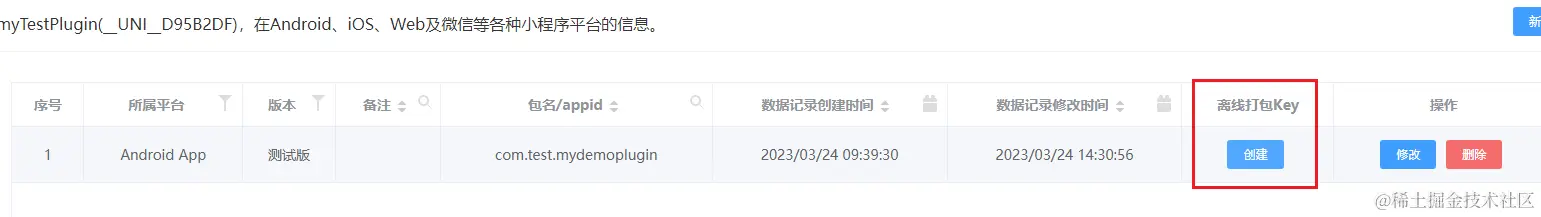 修改后点击保存,创建离线打包Key