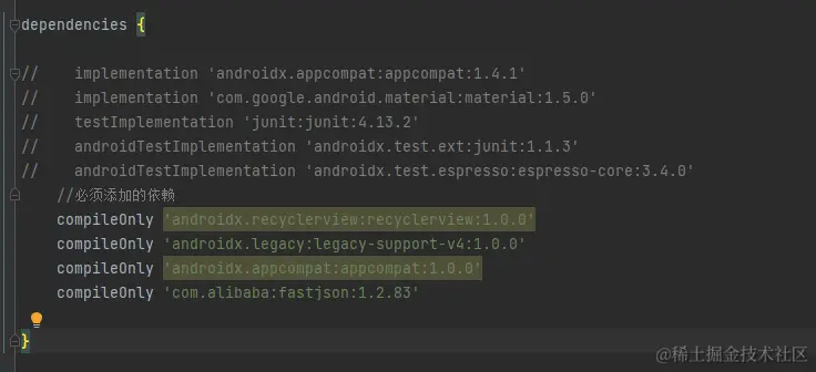 compileOnly 'androidx.appcompat:appcompat:1.0.0'