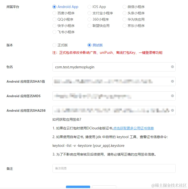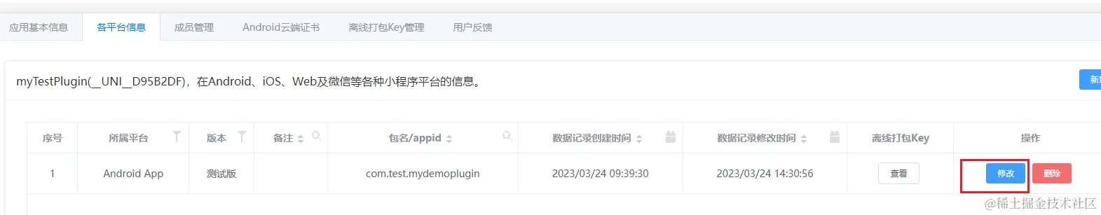 然后在dcloud中点击各平台信息点击修改