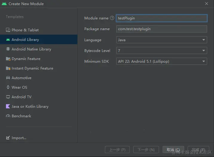 配置刚创建的Module(testPlugin)的build.gradle信息