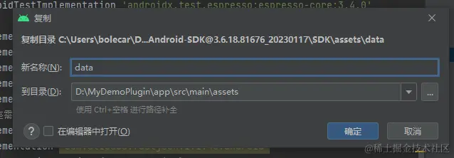 将下载的SDK在目录Android-SDK@3.6.18.81676_20230117\SDK\assets中找到data文件夹,拷贝到app>src>main>assets下