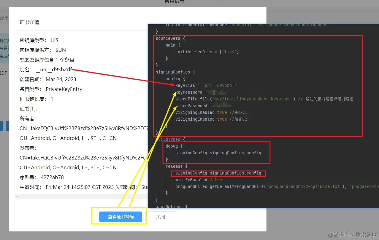 storePassword '你的证书密码'' v1SigningEnabled true //兼容v1