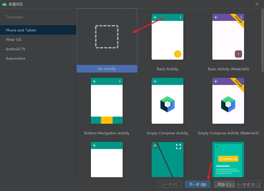 打开AndroidStudio,在菜单栏选择File>New>New Project,新建自定义项目。