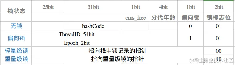 - 无锁:当线程不持有该对象的锁时,对象处于无锁状态