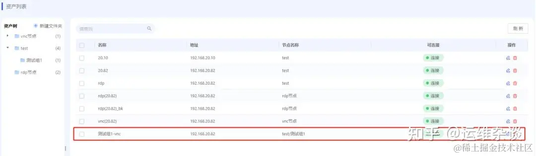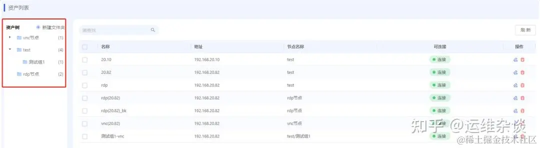 在OneTerm中,每个资产节点都包含一个节点名称属性,即为资产所属节点目录的路径,如图中test/测试组1,很自然的想到这种查询需要自顶向下的递归过程。