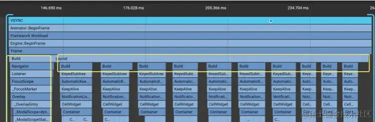 结合DevTools的分析图,我们可以看出。在上面130ms的构建的主要耗时集中在Layout中调用的build方法