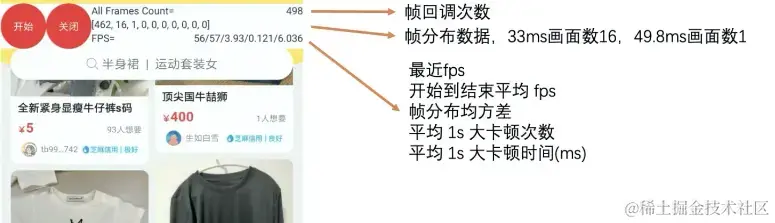 检测工具的效果:流畅度检测工具 APP 以悬浮框的方式显示