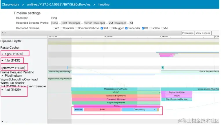 所以,我们做性能优化,关心DartUI,关心GPU两个线程,掉不掉帧,卡不卡的关键,
