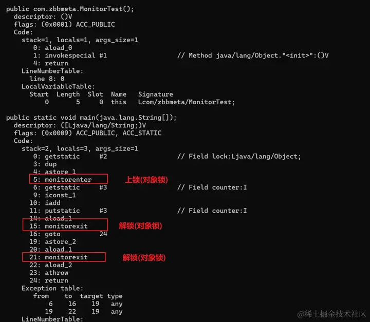 其中被monitorenter和monitorexit包围住的指令就是上锁的代码