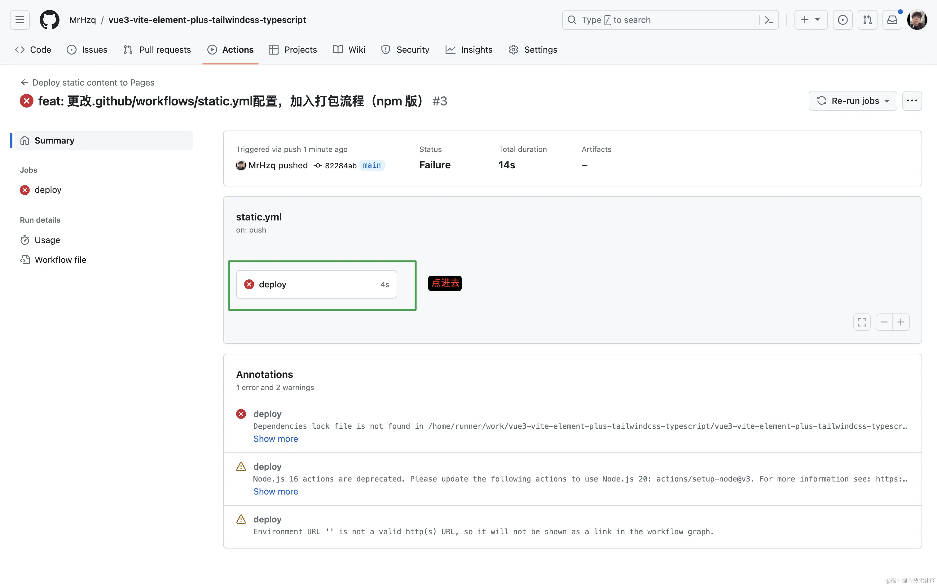 - 如果觉得频繁跳到 github 麻烦,可以安装 VScode 插件:GitHub Actions,然后在 VScode 里面直接看,并且还可点击直接打开网页的