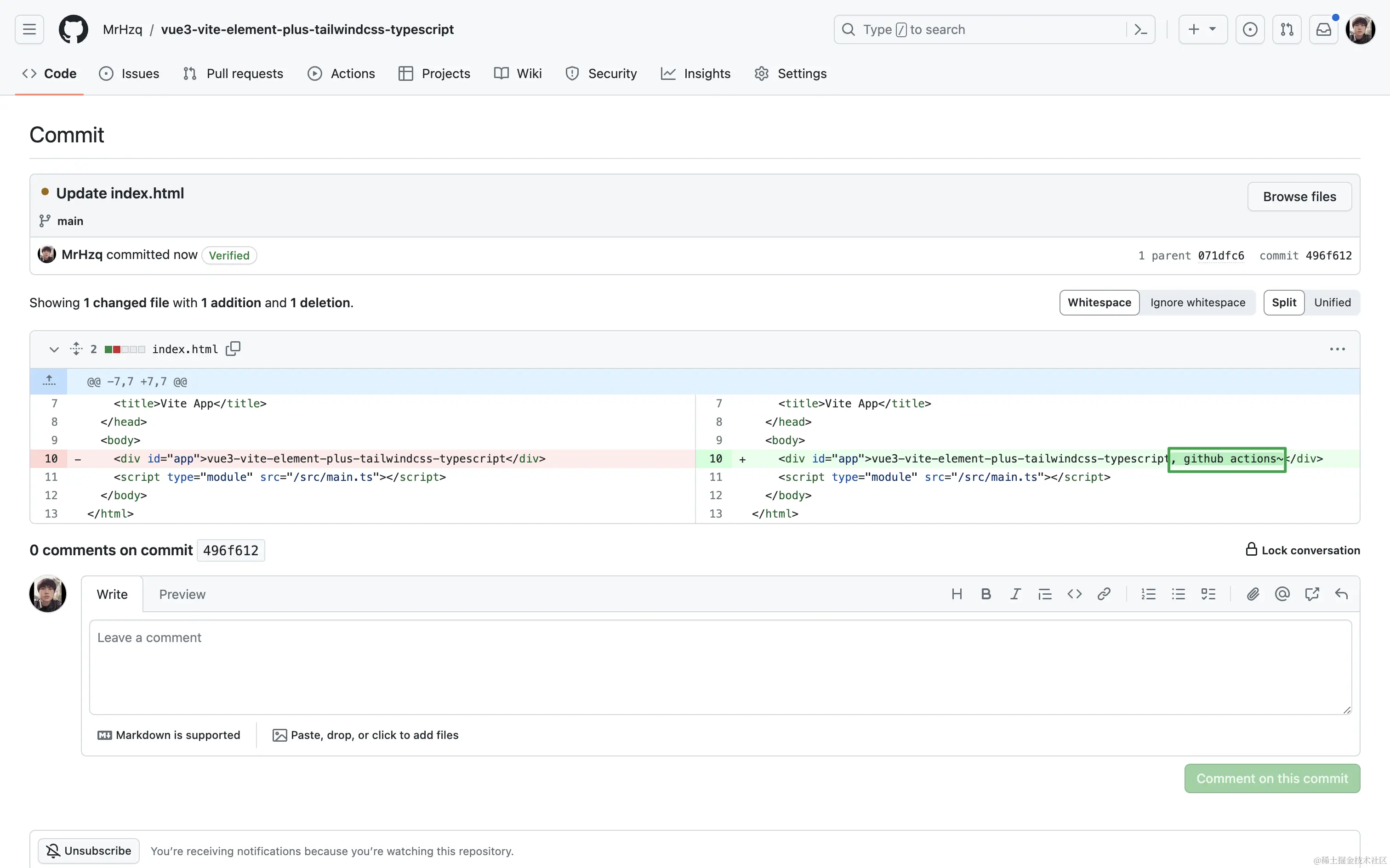- 现在去改一下该 github 项目根目录的 index.html 文件,加个点文字,然后提交代码