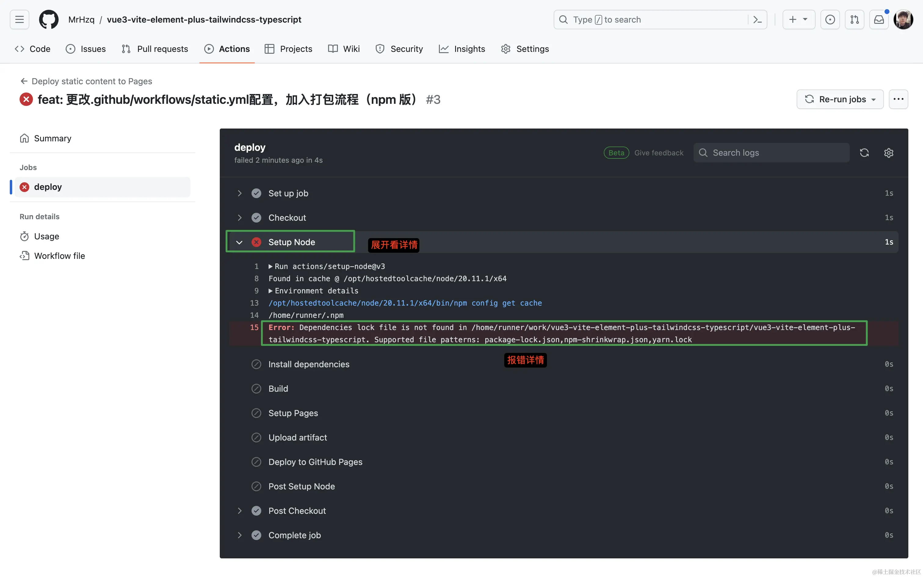 报错:Supported file patterns: package-lock.json,npm-shrinkwrap.json,yarn.lock