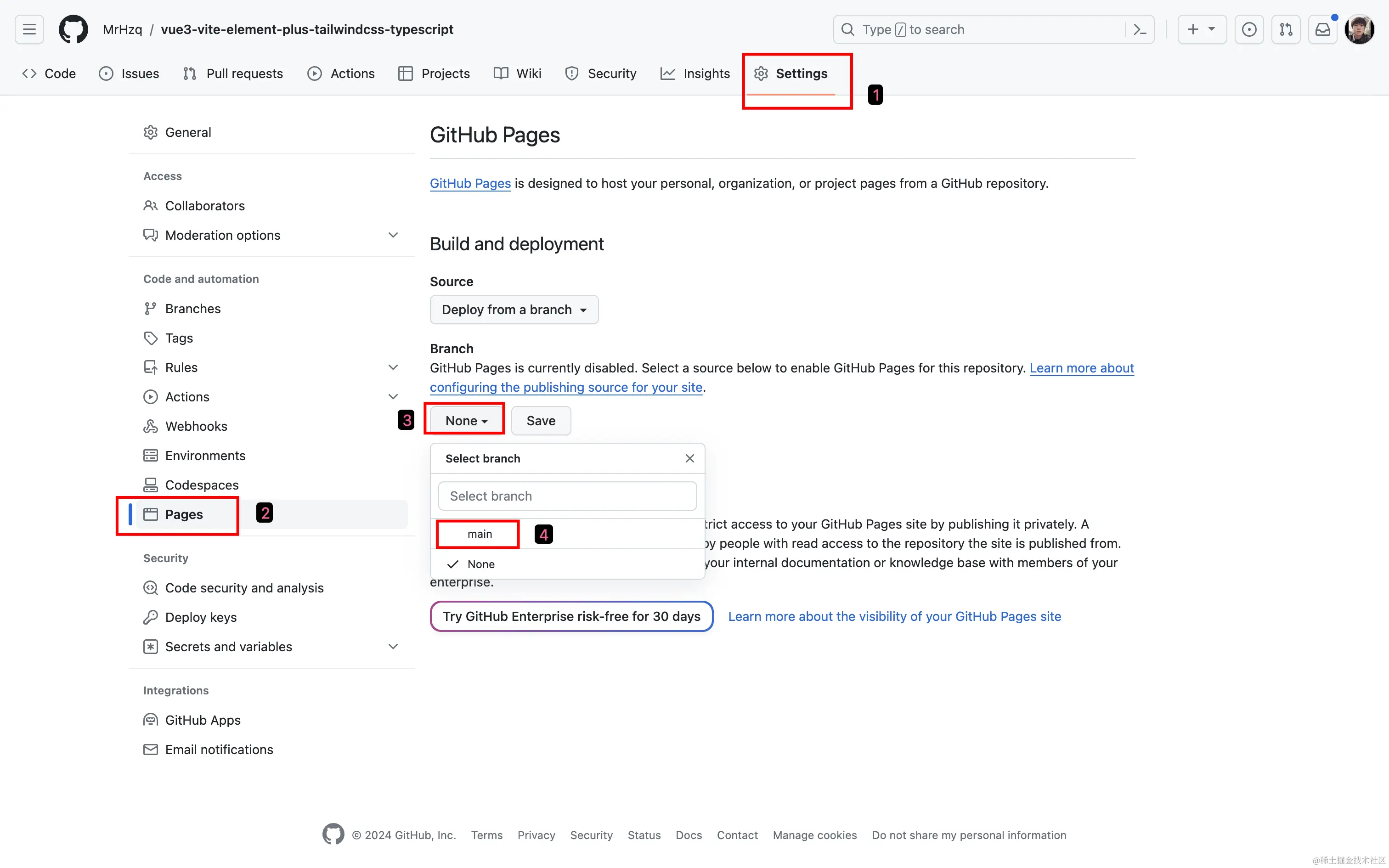 别急,这个原因是前端项目采用了history的路由模式,对github pages来说,访问https://mrhzq.github.io/vue3-vite-element-plus-tailwindcss-typescript/about是访问/about目录下的index.html