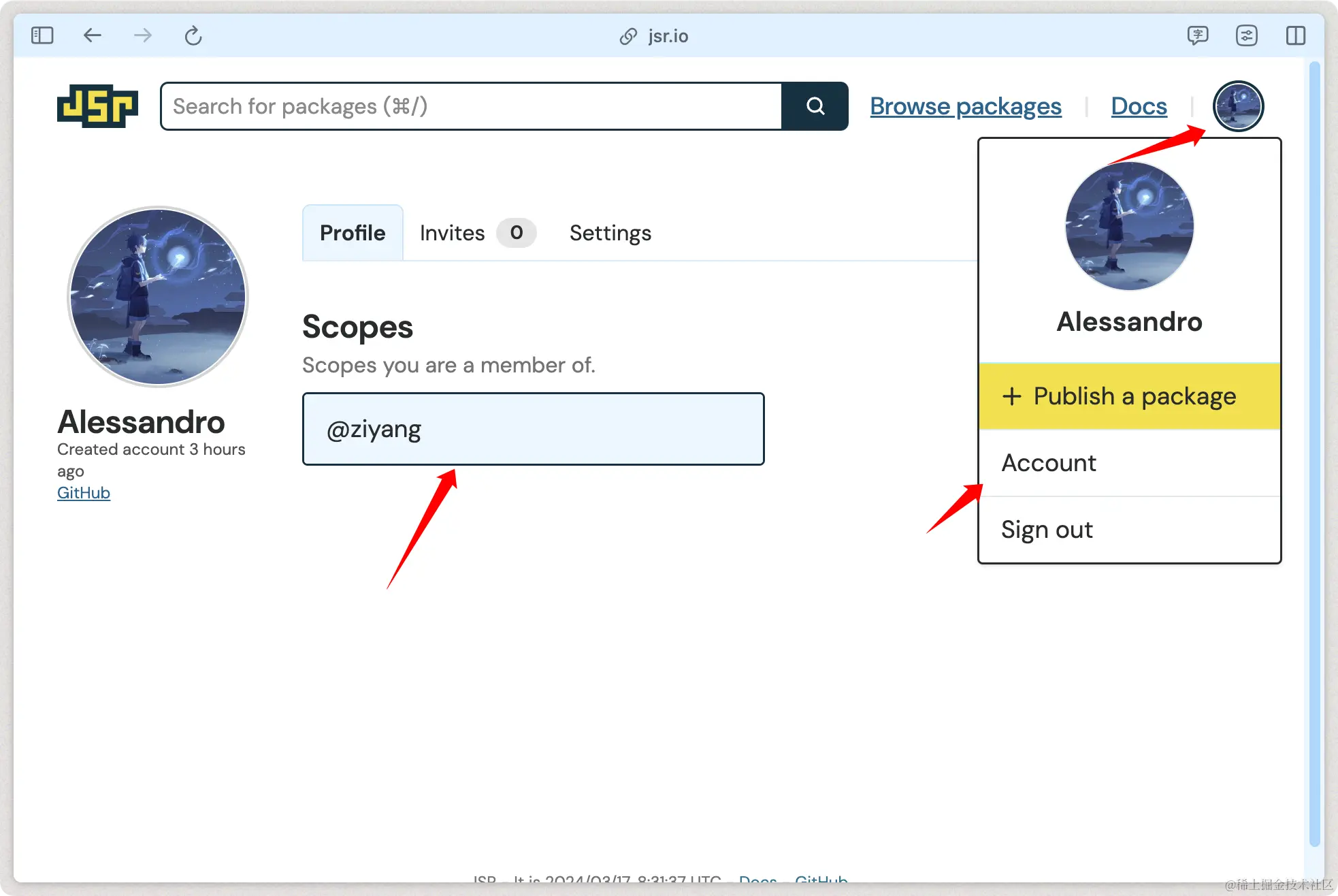 jsr仓库中创建自己的账号 - 然后在你的项目中创建一个