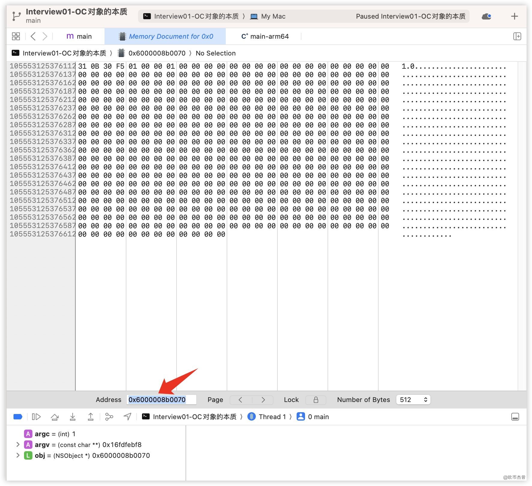 先说结果:一个NSObject对象占用的是16字节,但实际利用的只有 8 个字节