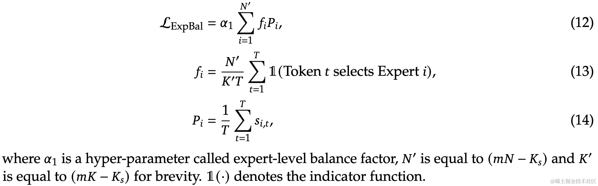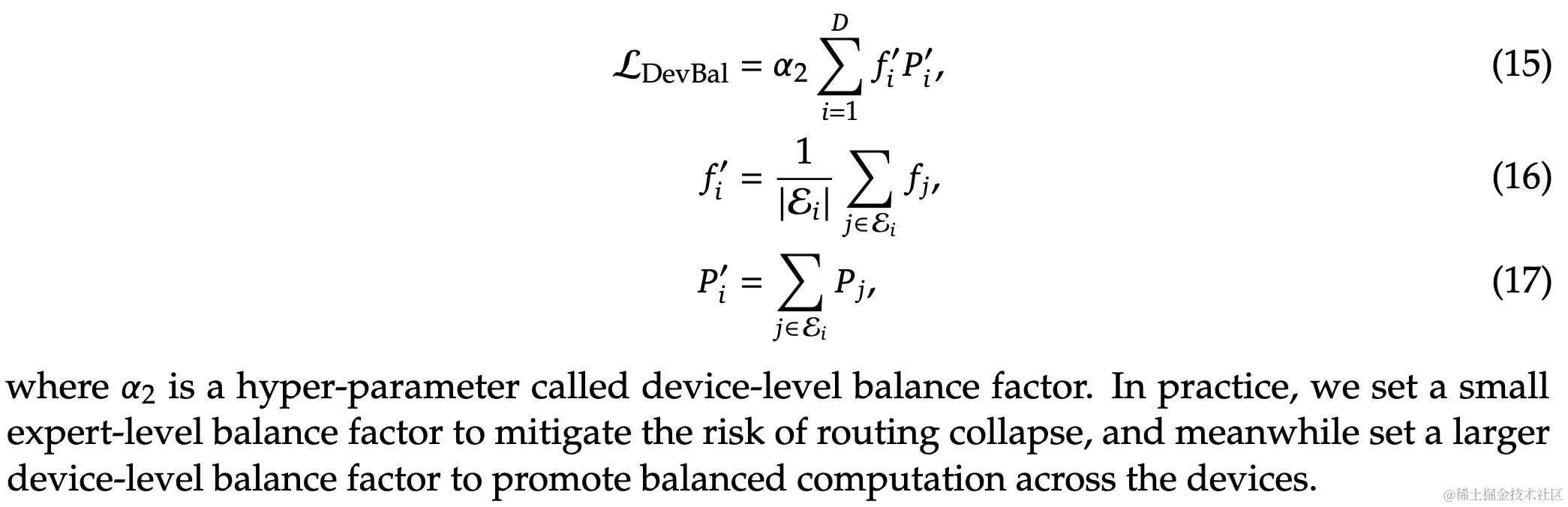 Load Balance Consideration:训练时如果模型总是选择部分experts,其他experts就无法得到充分训练;如果专家分布在不同的devices上,负载不均衡就会成为计算瓶颈Expert-Level Balance Loss:为了缓解路由崩塌的风险,我们采用了expert-level balance loss