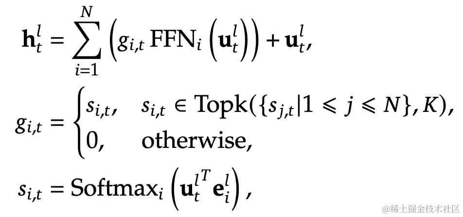 这里,如果存在于logits的topK位置,则,否则。这里的表示每个token使用的experts的数量,是一个可以自定义的超参数。