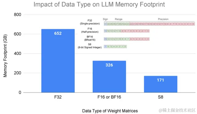 175亿参数的LLM模型在不同数据类型格式下的内存占用。