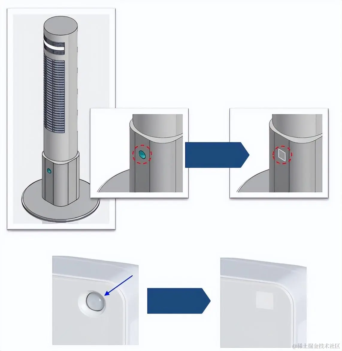 KEMET 热释电红外传感器的美学灵活性和设计多样性也给我留下了深刻印象。它大概只有指甲盖那么大,实际应用中几乎感觉不到它的存在。下面几张图片就是它在实际应用中的几种情况;如您所见,这个传感器就是那么的低调,你甚至都注意不到它的存在。