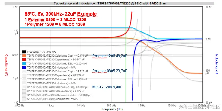 在那些板子空间有限,高度现在4.5mm 以内、有无噪声要求的场景中,T597 系列是一个不错的解决问题的思路。本文描述了聚合物替换MLCC的一些必须要考虑的参数,在实际的应用中,用同尺寸元件替换后就可以直接使用的情况是非常罕见的,大多数都需要重新测试和重新设计。从商务段考量,聚合物替换MLCC比较着重的是整体方案的cost-down (即以一换多,节省板子面积,节省打件成本等), 而不是单颗成本上的比较。