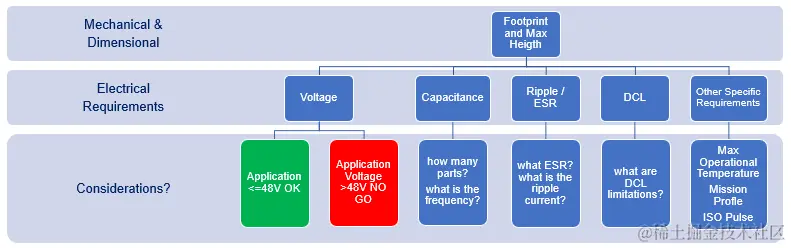 从图1a可以看出,聚合物钽电容和MLCC 重合的容值和电压范围是 1uf1000uf 和2.5V75V, 正好是部分大尺寸MLCC 所覆盖的范围。但是聚合物替换MLCC不是一对一的换上去就行,至少还需要考虑图1b里面所罗列的几个重要因素。