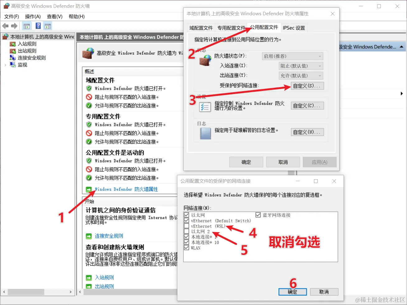 win+r 允许 WF.msc,然后放开对 wsl 和以太网的保护策略